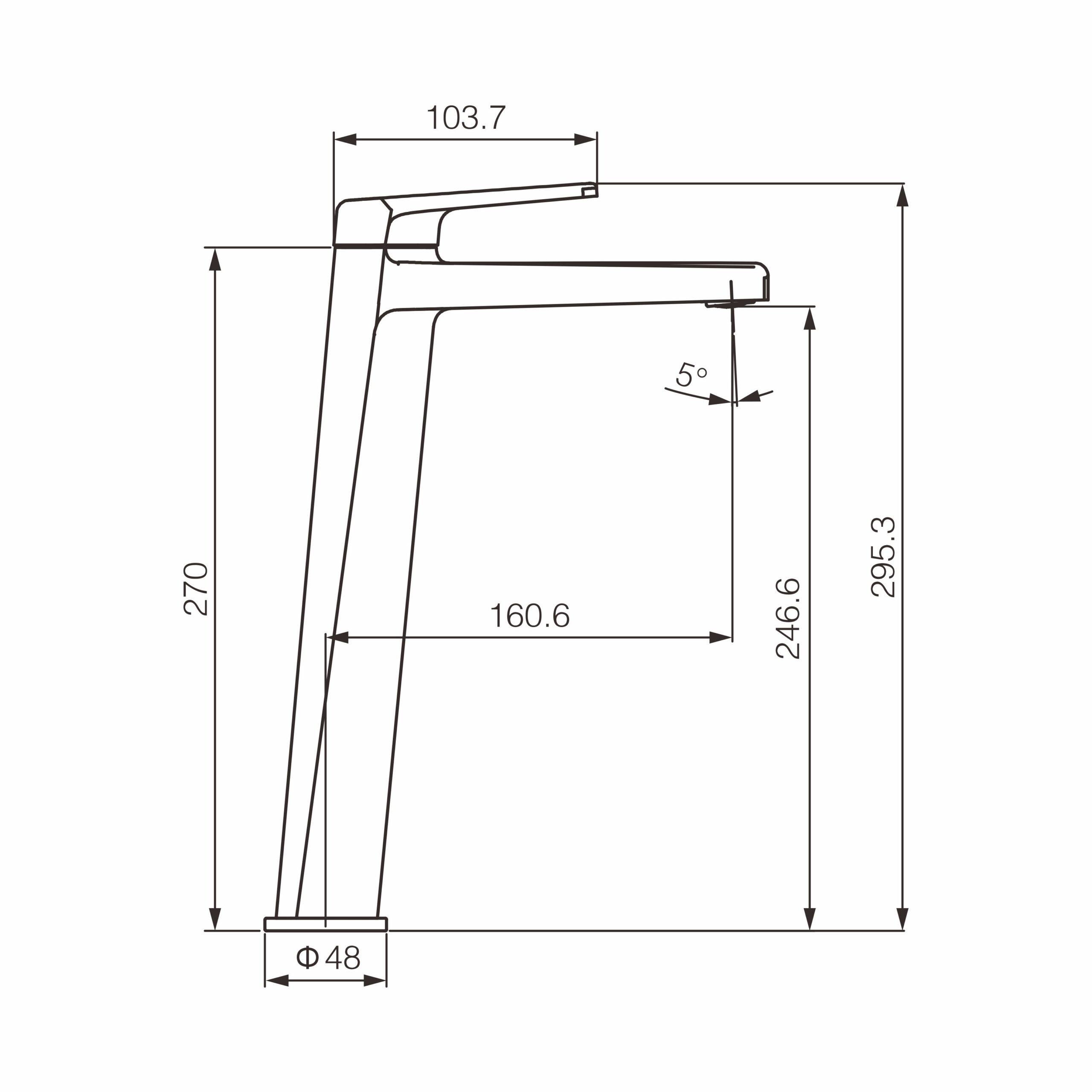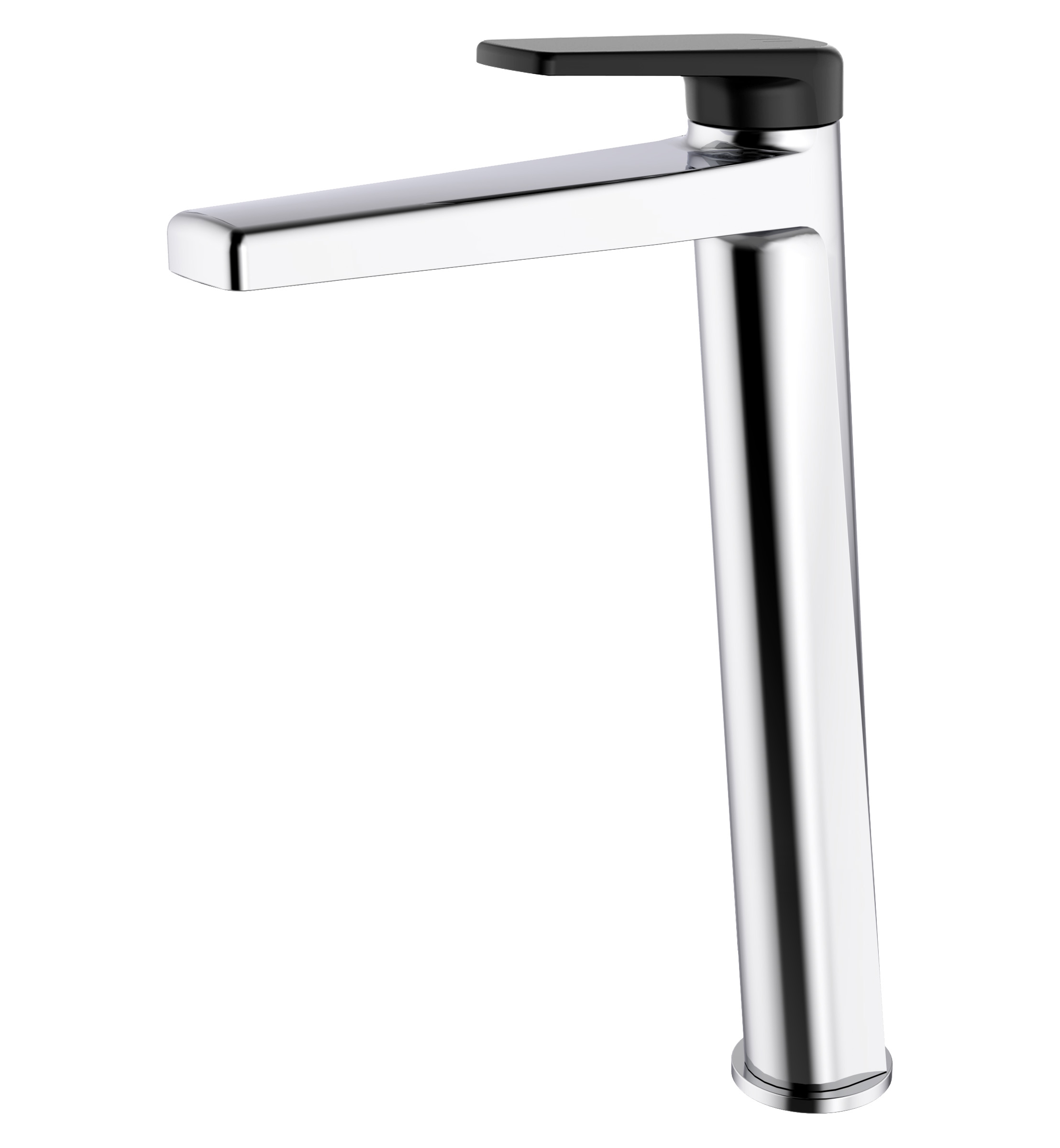 | Decorative Long Basin Mixer, Solid brass body, for Over-Top Basin, Finish: chrome with Black Handle, Size: 295x187x160mm,Mixer type: single-handle, Mixer Installation method: standing |