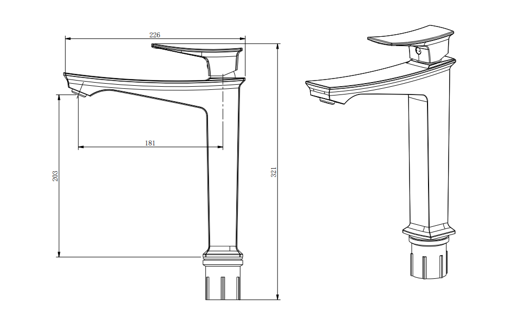Decorative Long Basin Mixer, Solid brass body, for Over-Top Basin, Size: 236x206mm, Mixer type: single-handle, Mixer Installation method: standing.