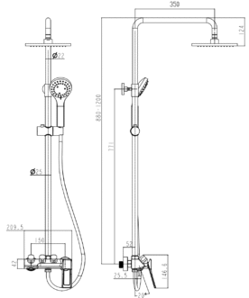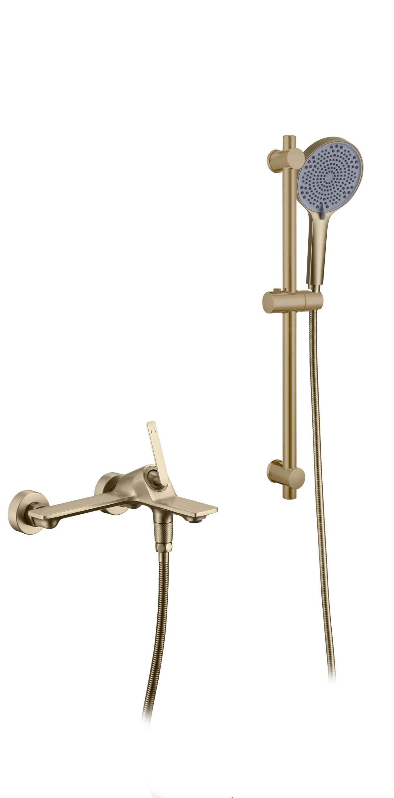 Bath Mixer, Ceramic Cartridge, gold color, Brass faucet, Brass elbow, With Gold Sliding Shower Set, Assembly: wall-mounted, material: Brass + ABS plastic.