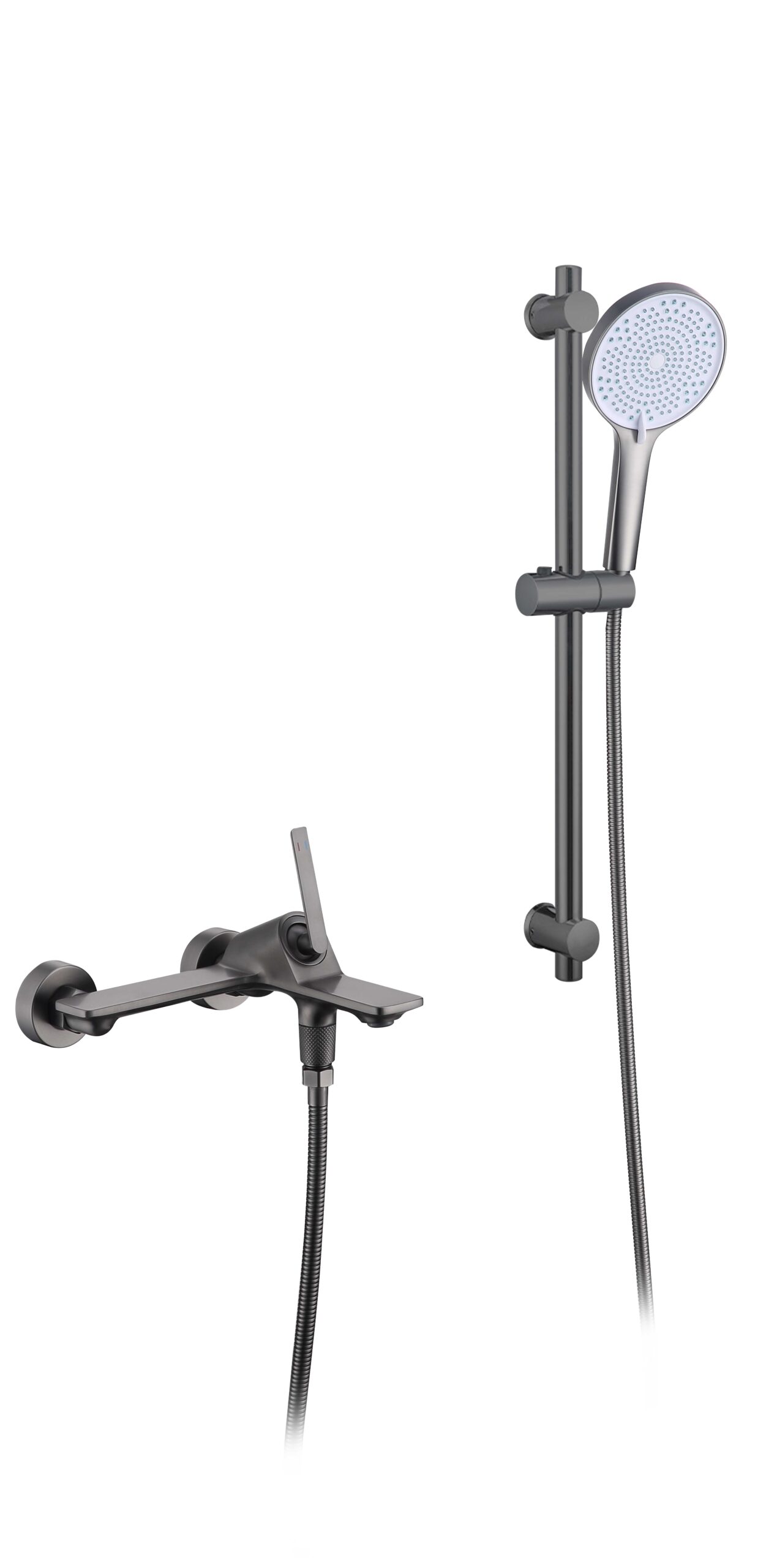 Bath Mixer, Ceramic Cartridge, Gun Gray color, Brass faucet, Brass elbow, With Gun Gray Sliding Shower Set, Assembly: wall-mounted, material: Brass + ABS plastic.