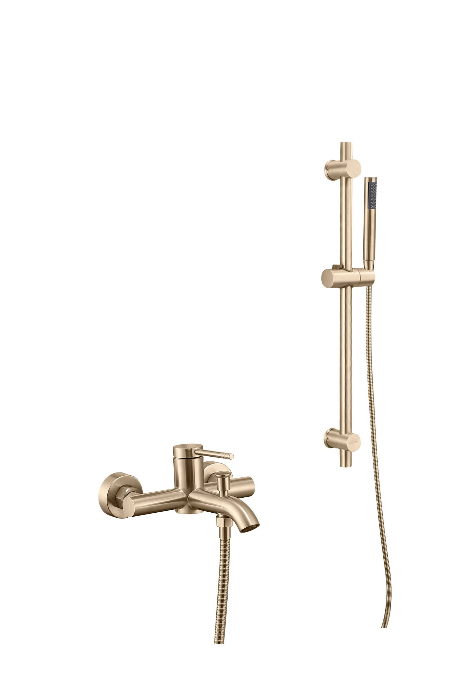 Bath Mixer, Ceramic Cartridge, Gold color, Brass faucet, Brass elbow, With Gold Sliding Shower Set, Assembly: wall-mounted, material: Brass + ABS plastic.