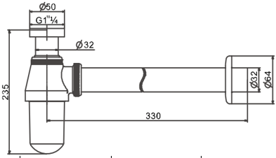 Bottle Trap for Washbasin, Waste Connection 1/4″,32mm dia x250mm, Brass with Stainless Steel#304.