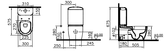 Close-coupled WC pan, back-to-wall, 57 cm. Single flush cistern mechanism. Kids WC Seat.