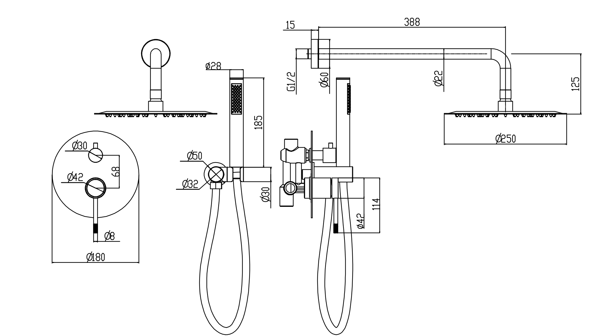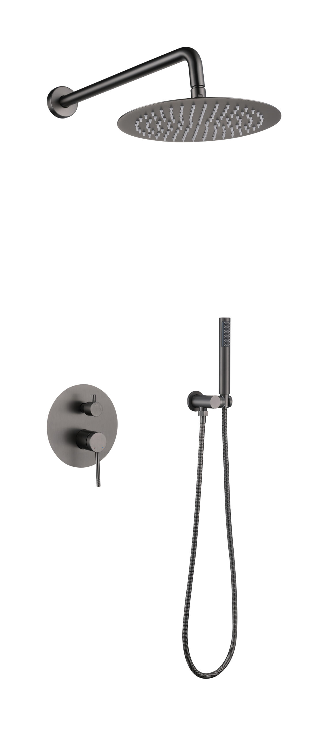 Concealed shower set, Finish: Gun Gray, Mixer type: single-handle, mixer Installation method: Concealed Including the Concealed Box, Gun Gray color.