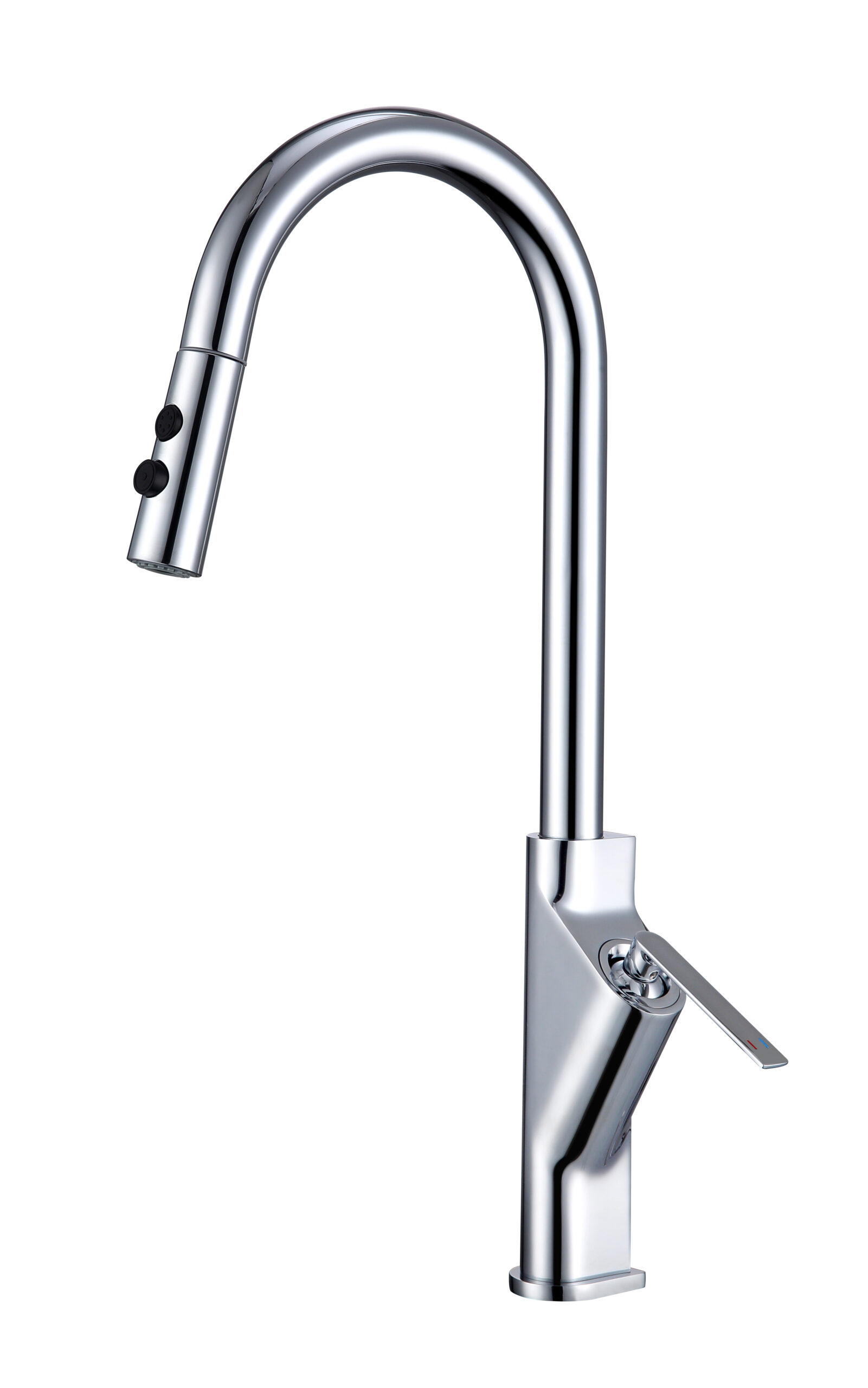 Pull-Out Kitchen Mixer, Solid brass body, Ceramic Cartridge, Brass spout, 1/2″, Finish: Chrome (Optional), with Pull-Out Handle, Mixer type: single-handle, Installation method: standing.