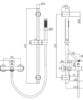 Bath Mixer, Ceramic Cartridge, Gun Gray color, Brass faucet, Brass elbow, With Gun Gray Sliding Shower Set, Assembly: wall-mounted, material: Brass + ABS plastic.